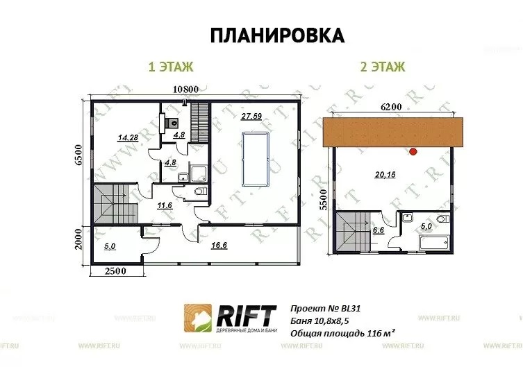 Наружная обшивка — вагонка, весь отделочный материал камерной сушки 10-12%.