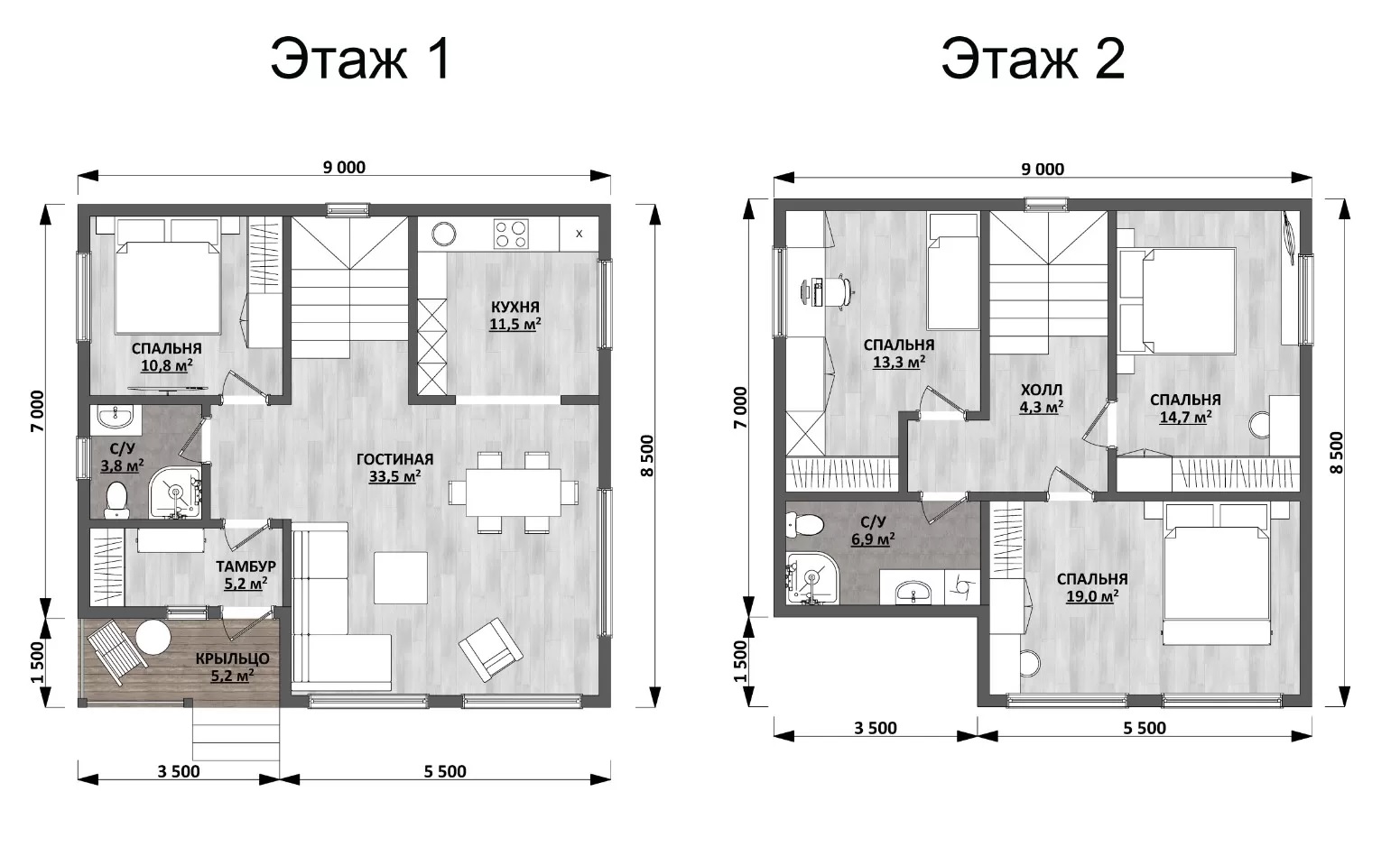 Основной материал строительства — профильный брус, который отличается высокой прочностью, долговечностью и отличными теплоизоляционными свойствами. Такой дом легко поддерживает оптимальную температуру в любое время года: зимой сохраняет тепло, а летом обеспечит прохладу. Просторные гостиные, комфортные спальни и функциональные подсобные помещения позволяют эффективно использовать пространство дома. Дом из бруса XL14 — это гармония с природой и комфорт для всей семьи.