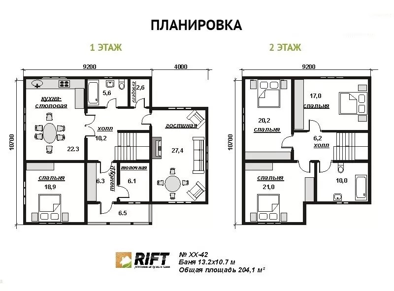 XX42 из бруса — это классика деревянного домостроения. Площадь дома дает простор для реализации любых планировочных решений. На первом этаже предусмотрены кухня-гостиная и хозблок, на мансарде — спальни. Брус создаёт тёплый и уютный микроклимат, который не требует сложного ухода. Идеально подходит для дачи или постоянного проживания.