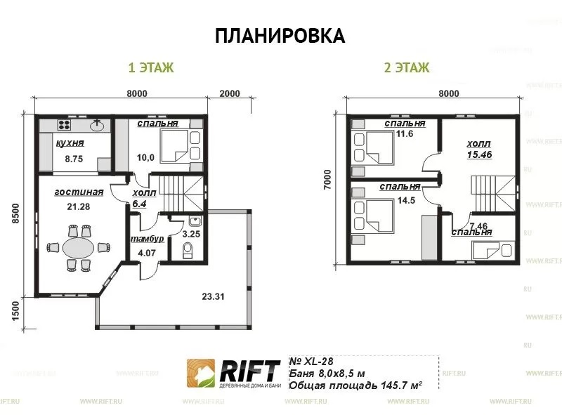 Проект XL28 из профилированного бруса — это теплый и красивый дом с общей площадью 145 м2 . Плотная посадка элементов минимизирует щели, а естественный рисунок древесины придает дому индивидуальность. Это отличный вариант для тех, кто ценит экологичность и экономичность в эксплуатации.