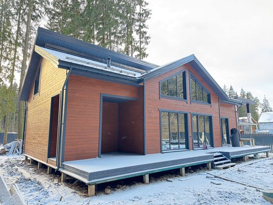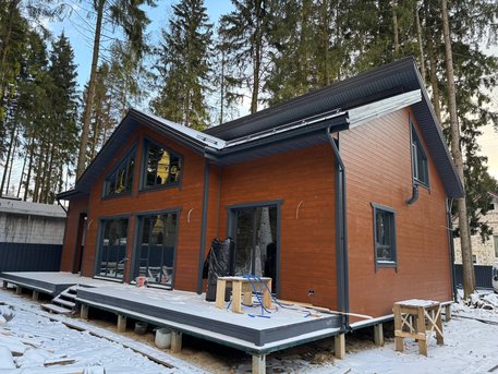 Строительство деревянного или каркасного дома под ключ предполагает, что на вашем участке будет возведен коттедж, что называется, с нуля. По сути, вам останется только получить ключи и начать обживаться в новом доме. Термин «под ключ» в строительной сфере уместно сравнить с понятием all inclusive в туризме. Вы приезжаете на нашу демонстрационную площадку, выбираете понравившийся проект. При необходимости наши архитекторы вносят в него изменения в соответствии с вашими пожеланиями. Проектная документация прикладывается к договору строительного подряда, и дальше мы приступаем к реализации проекта. Закупка материалов, доставка домокомплекта на участок, работы по отделке фасада и чистовая внутренняя отделка — все это осуществляется нашими специалистами. Кроме того, мы предлагаем широкий спектр дополнительных услуг — подключение к системам жизнеобеспечения, устройство водосточных систем и многое другое.