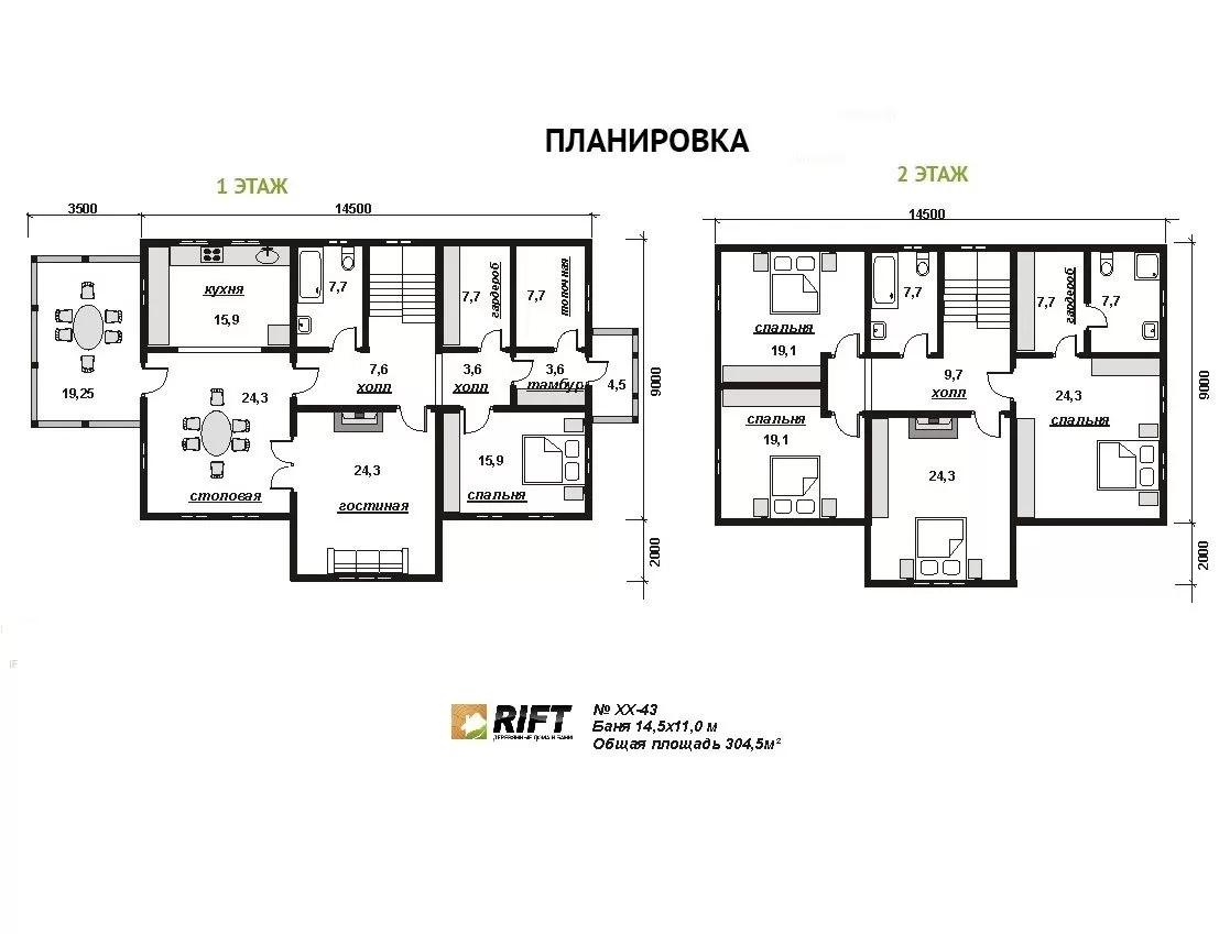 Силовой каркас | Силовой каркас первого этажа и фронтоны выполняются из качественной доски 150х40 мм. C шагом 590 мм. | |