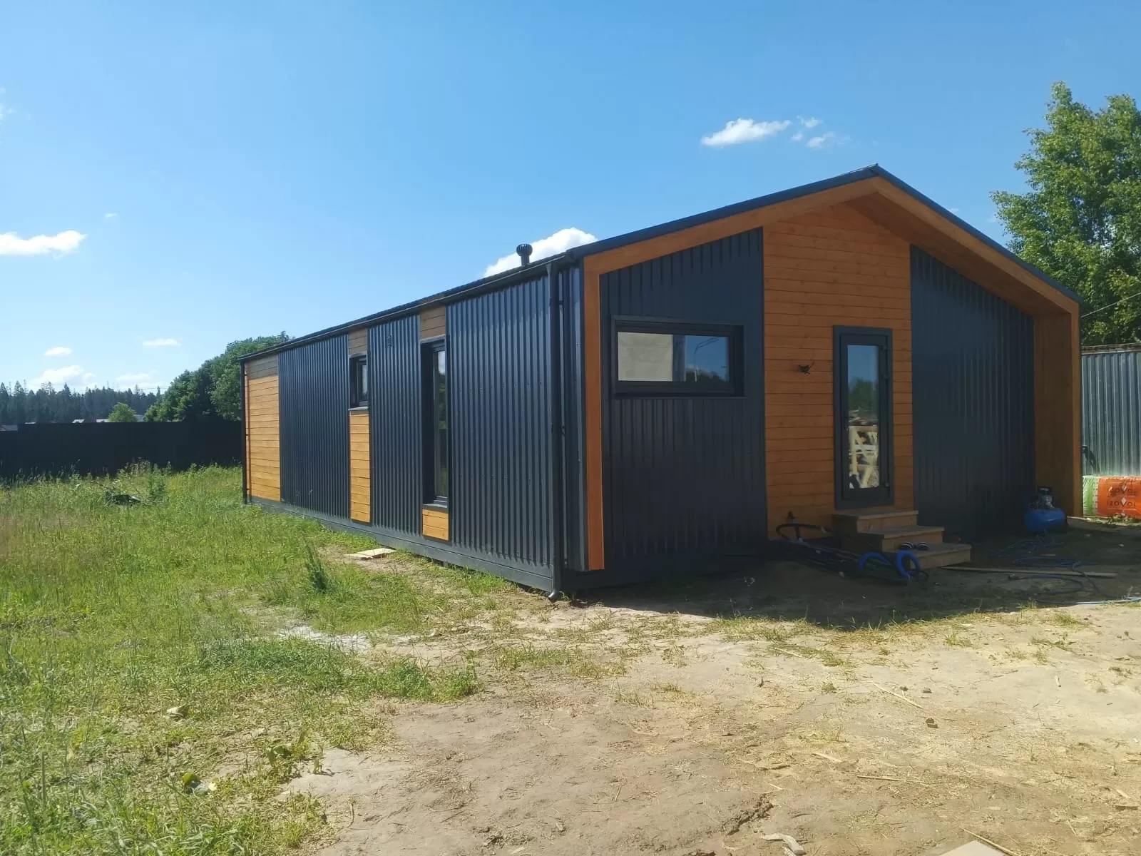 Также отметим простую отделку, которая не требует больших затрат. Обычно внешние и внутренние стены обшиваются гипсокартоном и панелями с желаемой текстурой, не требуя штукатурить стены, устанавливать обрешётки или металлические профили.